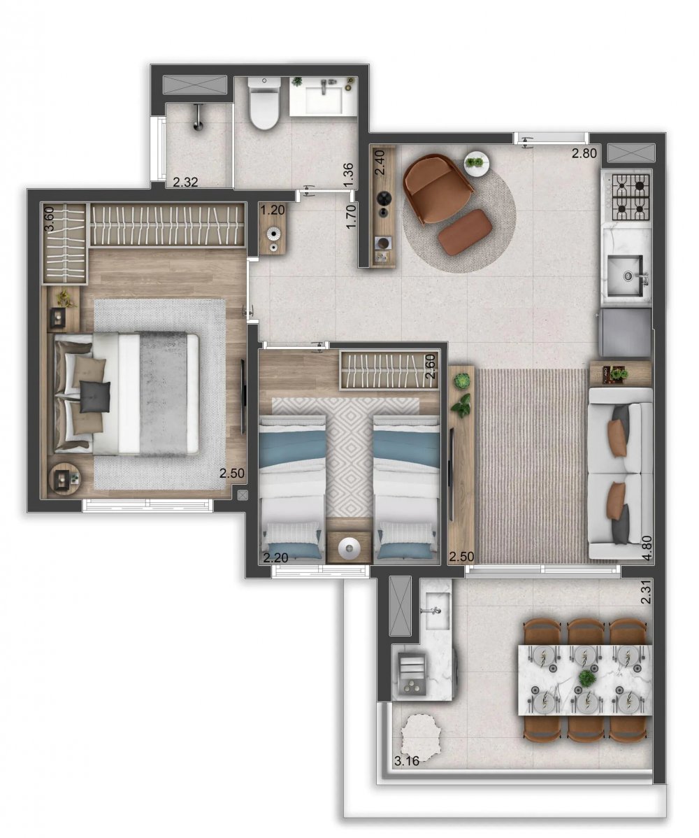 - Área Privativa: 49 m²