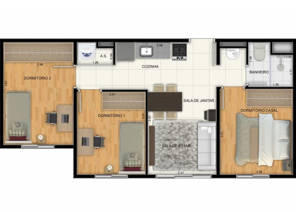 1, 2 e 3 DORMS