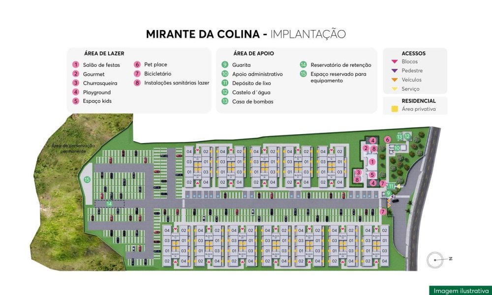 Realize o sonho de morar em Itaquá no Mirante da Colina. Venha se encantar com nossos apartamentos de 2 dormitórios com opção de área privativa e vaga de garagem, uma área de lazer completa com playground, espaço kids, espaço gourmet, churrasqueira, salão de festas e pet place.